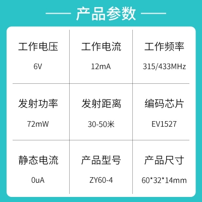 ZY60是一款小功率91短视频版在线观看免费遥控器,具有可靠性高、频率稳定、穿透能力强等特点;